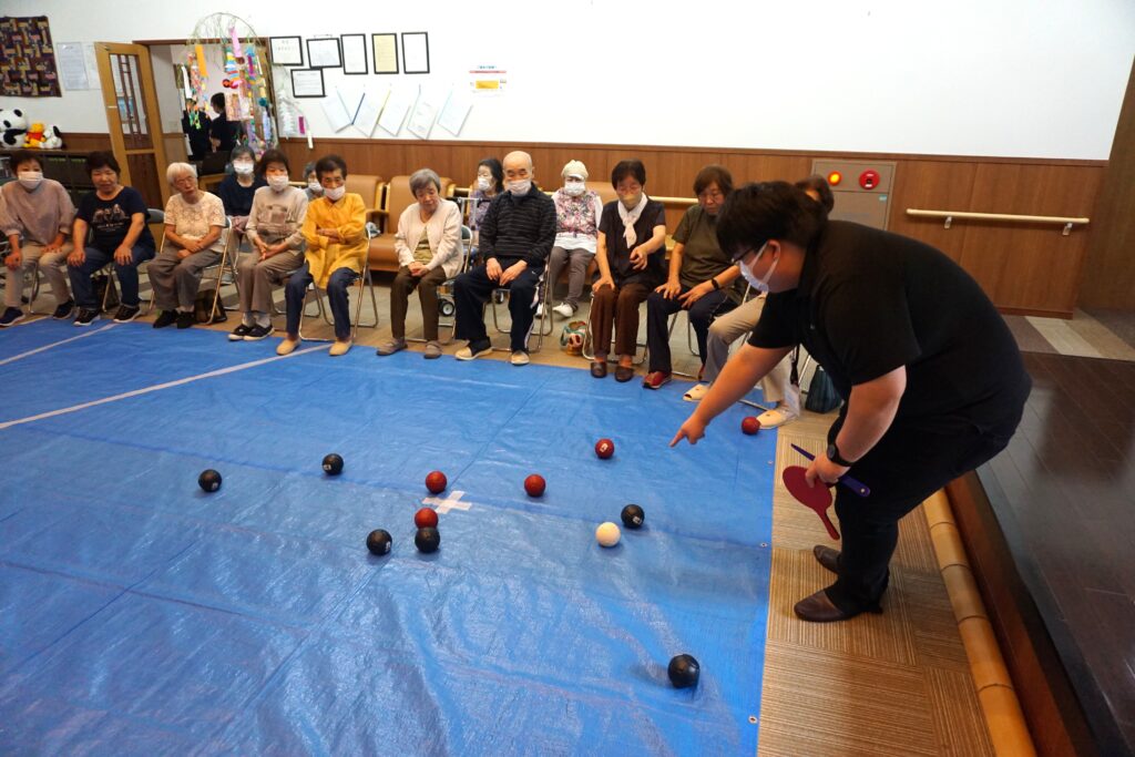 ボールをコントロールするのが難しく接戦となりましたが、ボールを投げる時は真剣な表情で、ジャックボールに近づくと歓声が上がり大いに盛り上がりました。終わった後に参加された皆さまから「とても面白かった!」との声が聞かれました。