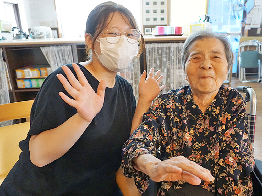 小さい頃から祖父母が大好きで、お年寄りの方と関わる事も自然と好きでした。以前は接客業をしており、高齢のお客様とお話をする時間が楽しかった事もあり、この仕事を目指すようになりました。